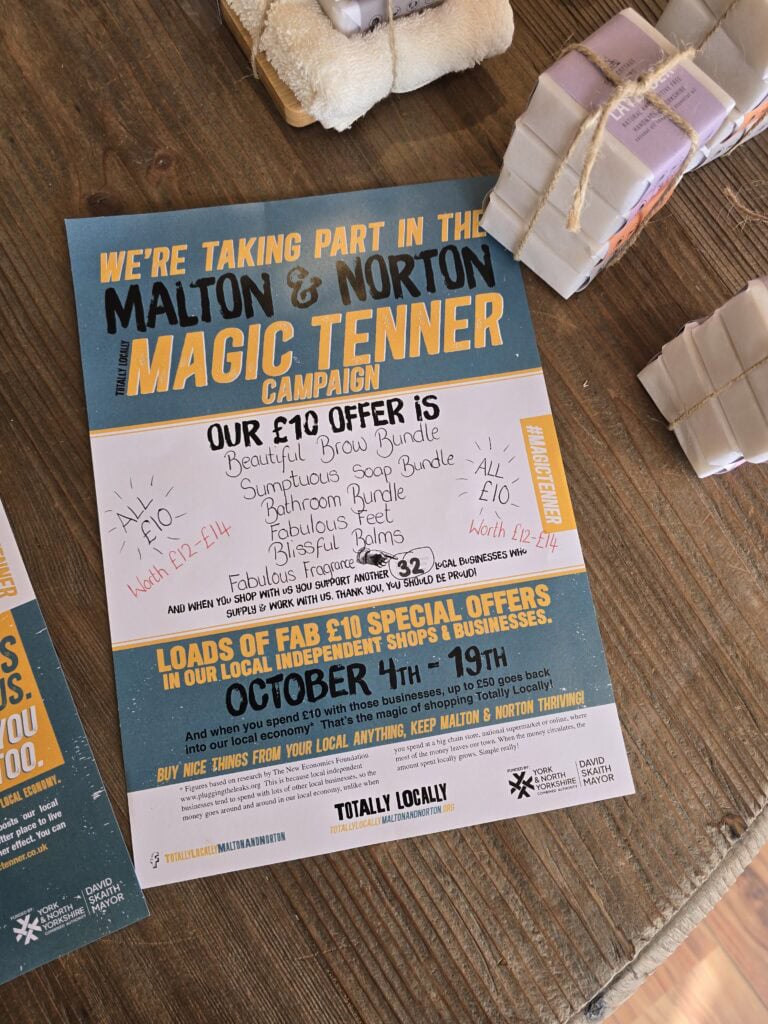 We had a wander around Malton yesterday — always a favourite trip for a mix of good food, friendly faces, and proper Yorkshire character. This time we noticed something special: Malton and Norton are taking part in the “Totally Locally Magic Tenner” campaign, a brilliant initiative designed to show how small actions can have a big impact on our local economy.